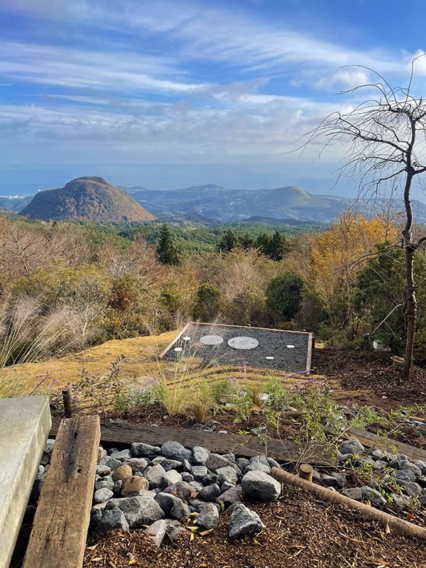 大室山、矢筈山、相模湾が見渡せる好立地の庭。