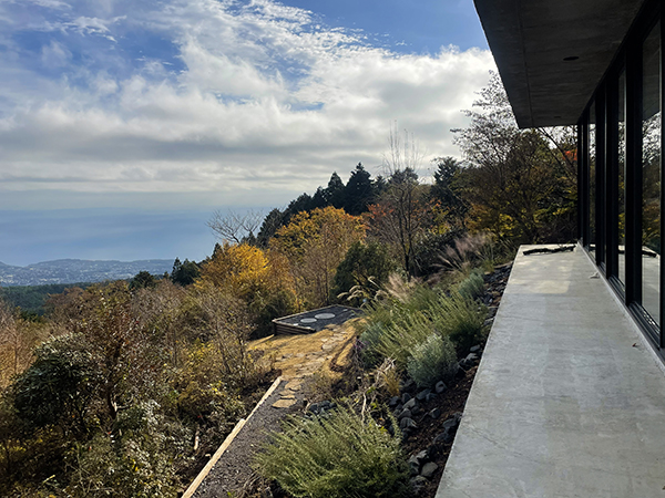 大室山、矢筈山、相模湾が見渡せる好立地の庭。