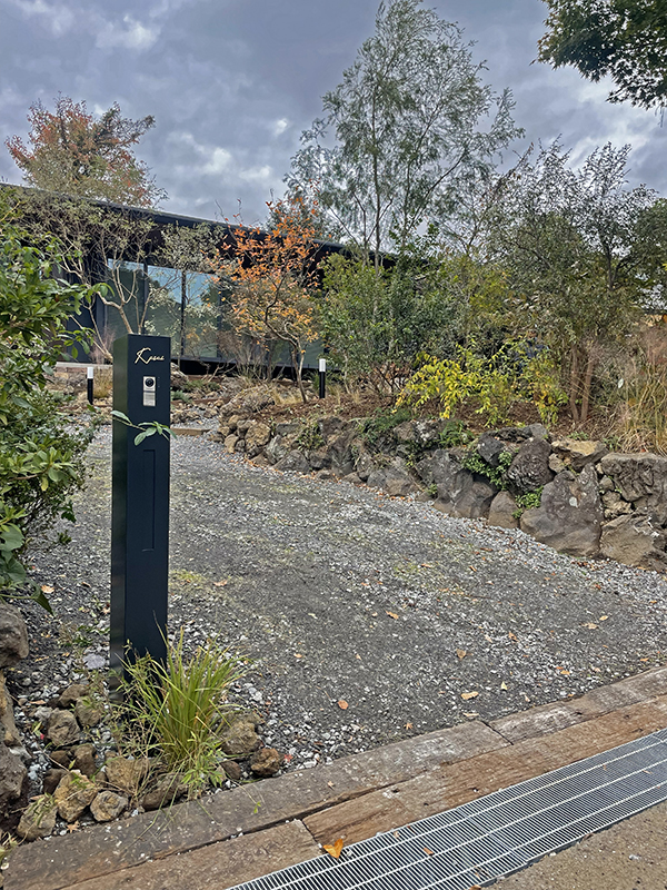 彩り豊かな樹木と風にそよぐグラス類、荒々しい溶岩石に包まれた伊豆の風景を想起させる住宅。